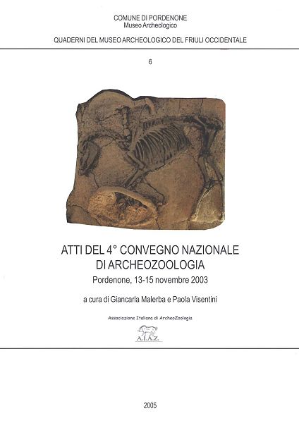 | 6 - Atti del 4° Convegno Nazionale di Archeozoologia (Pordenone, 13-15 novembre 2003) (a cura di Giancarla Malerba e Paola Visentini), Pasian di Prato (UD) 2006, Lithostampa, Euro 25,00 |